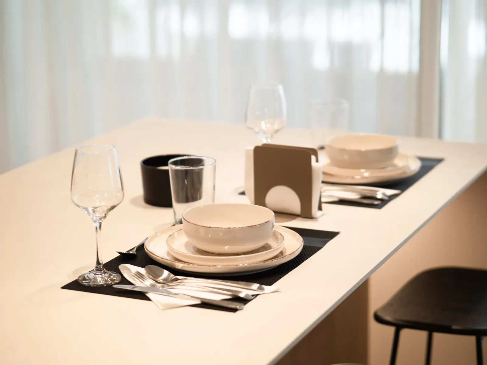 All our apartments share similar style and design. Upon entering, you’ll be greeted by a spacious living area that exudes warmth and style. The open-plan design seamlessly integrates the living, dining, and kitchen areas, creating a harmonious flow that is perfect for both relaxation and entertainment. Large windows invite natural light to flood the space, offering garden or city views.